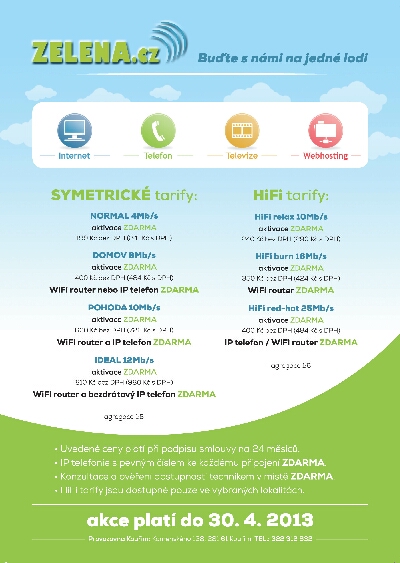 Využijte naši speciální nabídku. Více v přiloženém letáčku níže (pro zvětšení klikni myší na letáček). Akce platí do 30. 4. 2013
